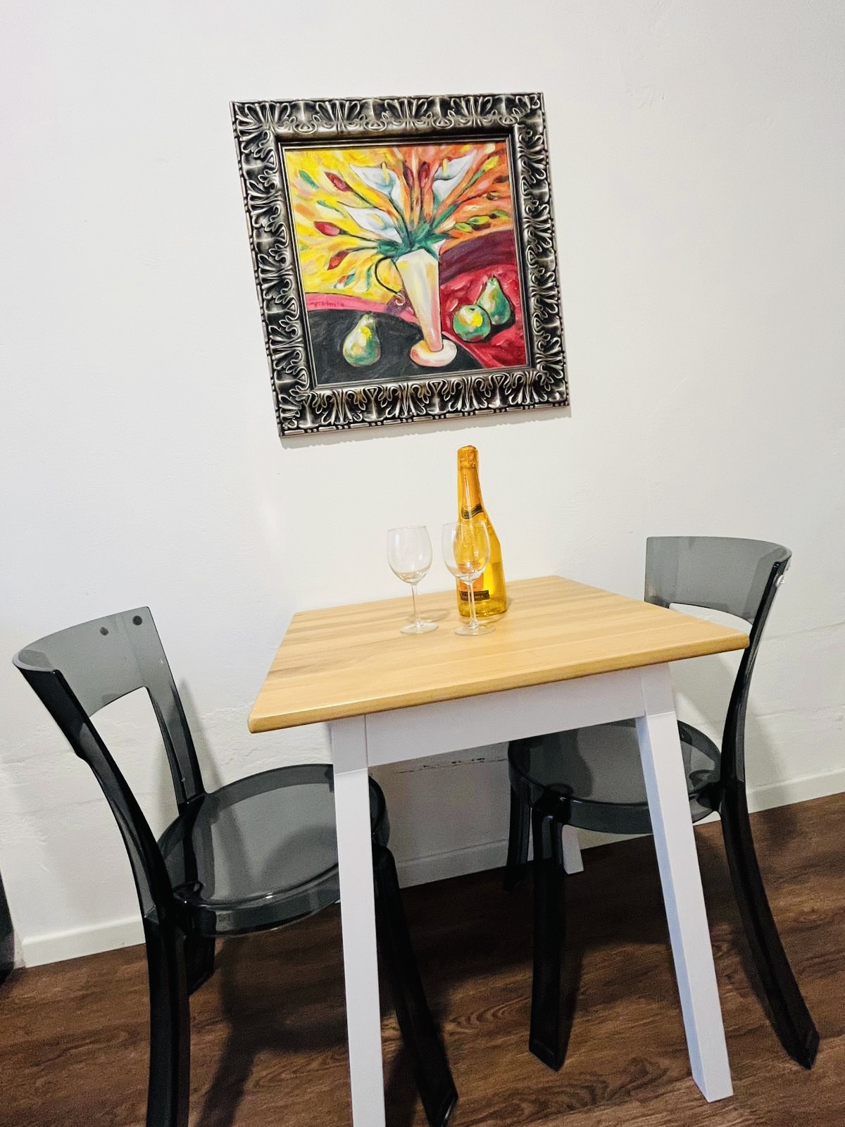 Najmenší apartmán s kapacitou 2 osoby a výmerou 25m2 sa nachádza na južnej strane domu vedľa apartmánu Sud. Menšie posedenie priamo pred apartmánom a veľké presklené dvere poskytujú dostatok svetla a má tiež komfortný bezbariérový prístup. Pozostáva z jednej otvorenej miestnosti s posteľou, gaučom, kuchyňou a sprchou a v oddelej malej miestnosti je WC a umývadlo. K dispozícii pre hostí je klimatizácia s kúrením, Wifi, kávovar Nespresso, práčka, postelné prádlo a uteráky, kuchynské vybavenie a základné hygienické potreby.