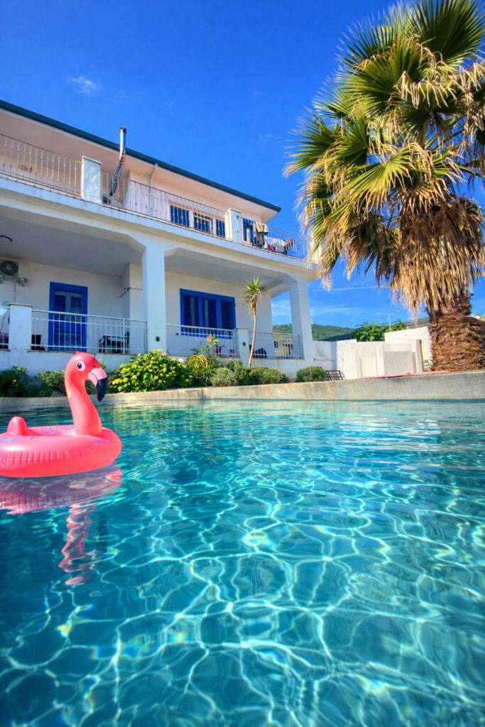 Všetky štyri apartmány sa nachádzajú v našom hlavnom dome so samostatnými vstupmi a k dispozícií je spoločný priestor s bazénom, umelou trávou, grilom a posedením pod krásnou palmou. Apartmány sú plne vybavené s kuchyňou, klimatizáciou s kúrením a wifi. Bazén je v prevádzke od 1.6 do 15.9